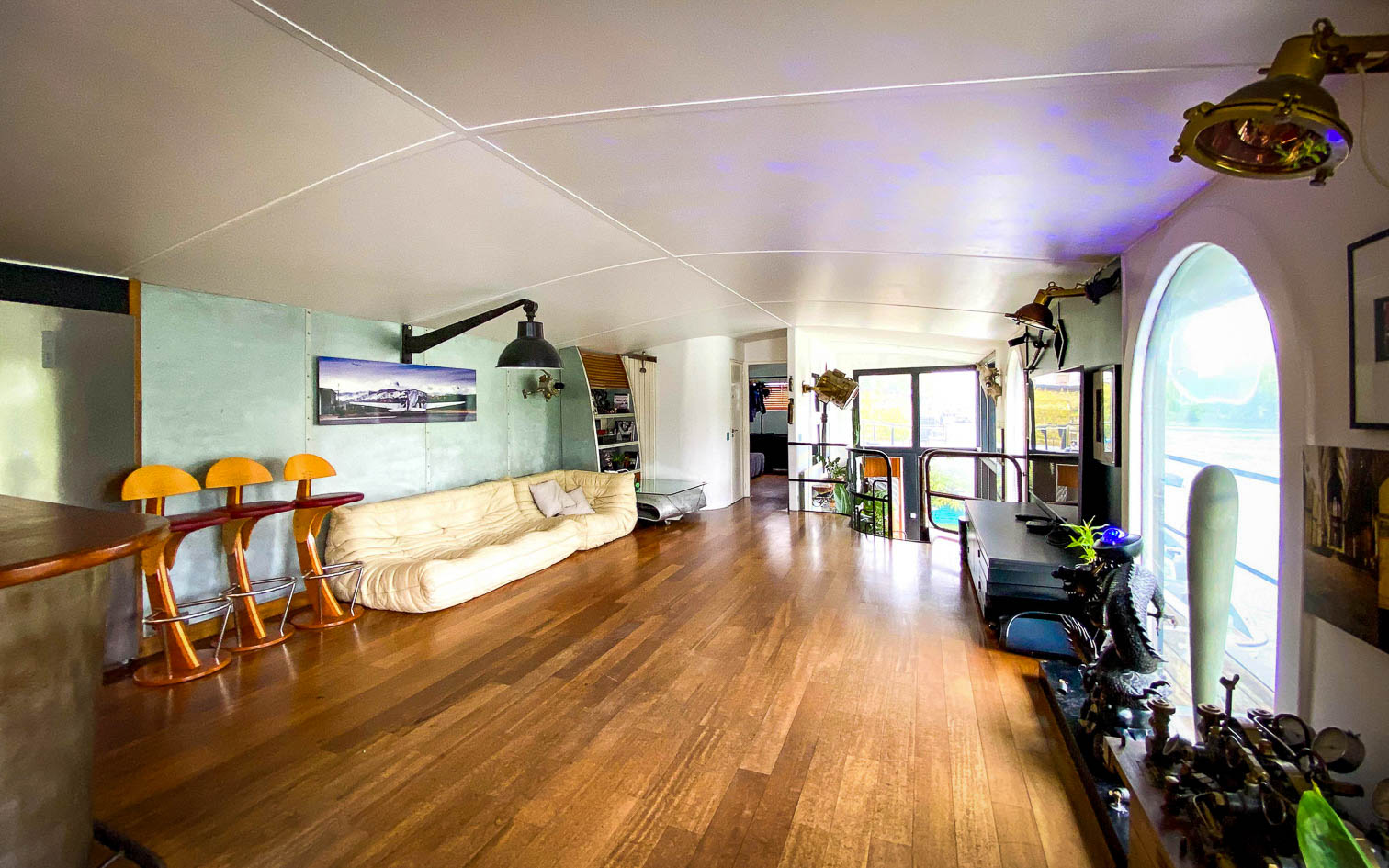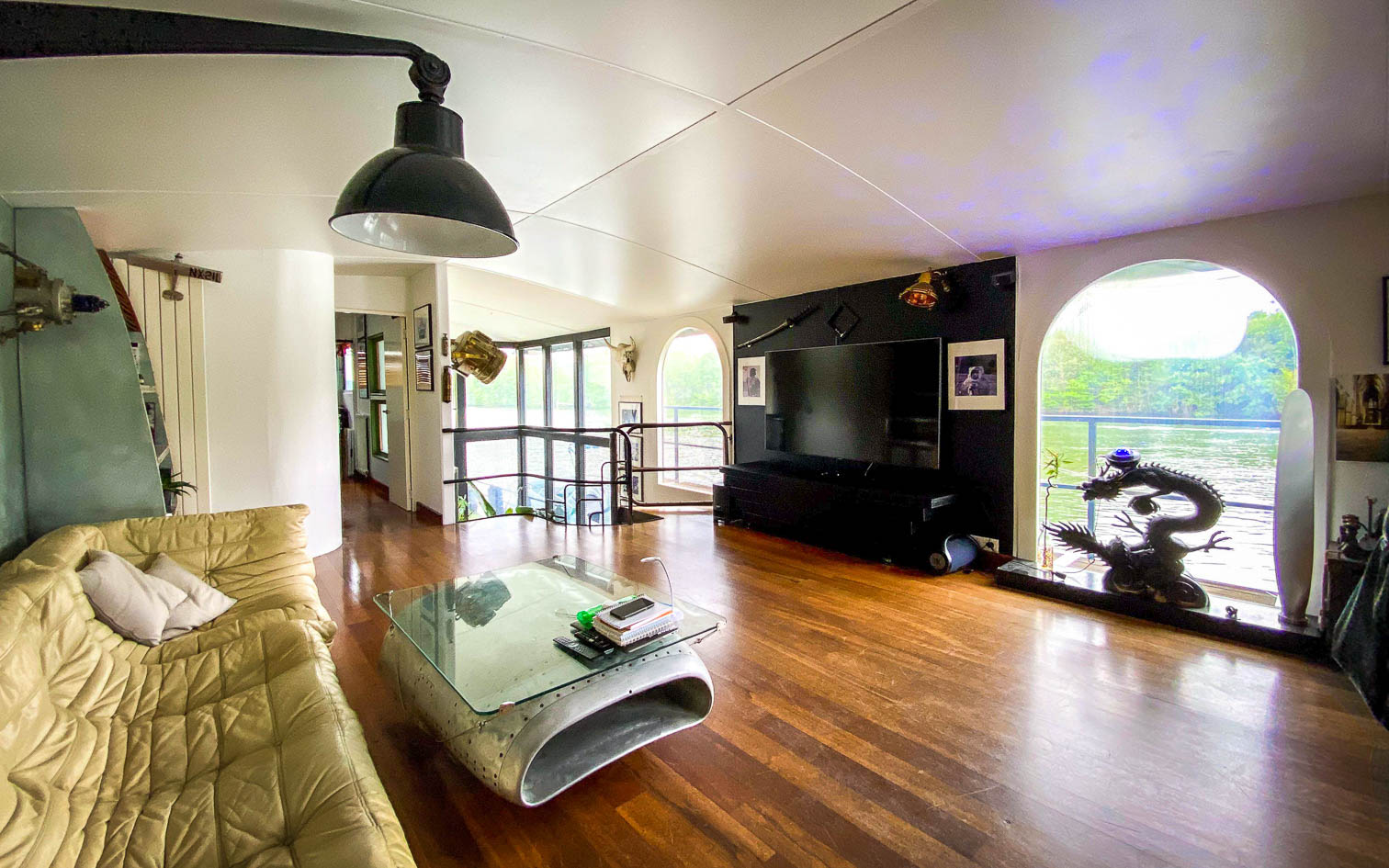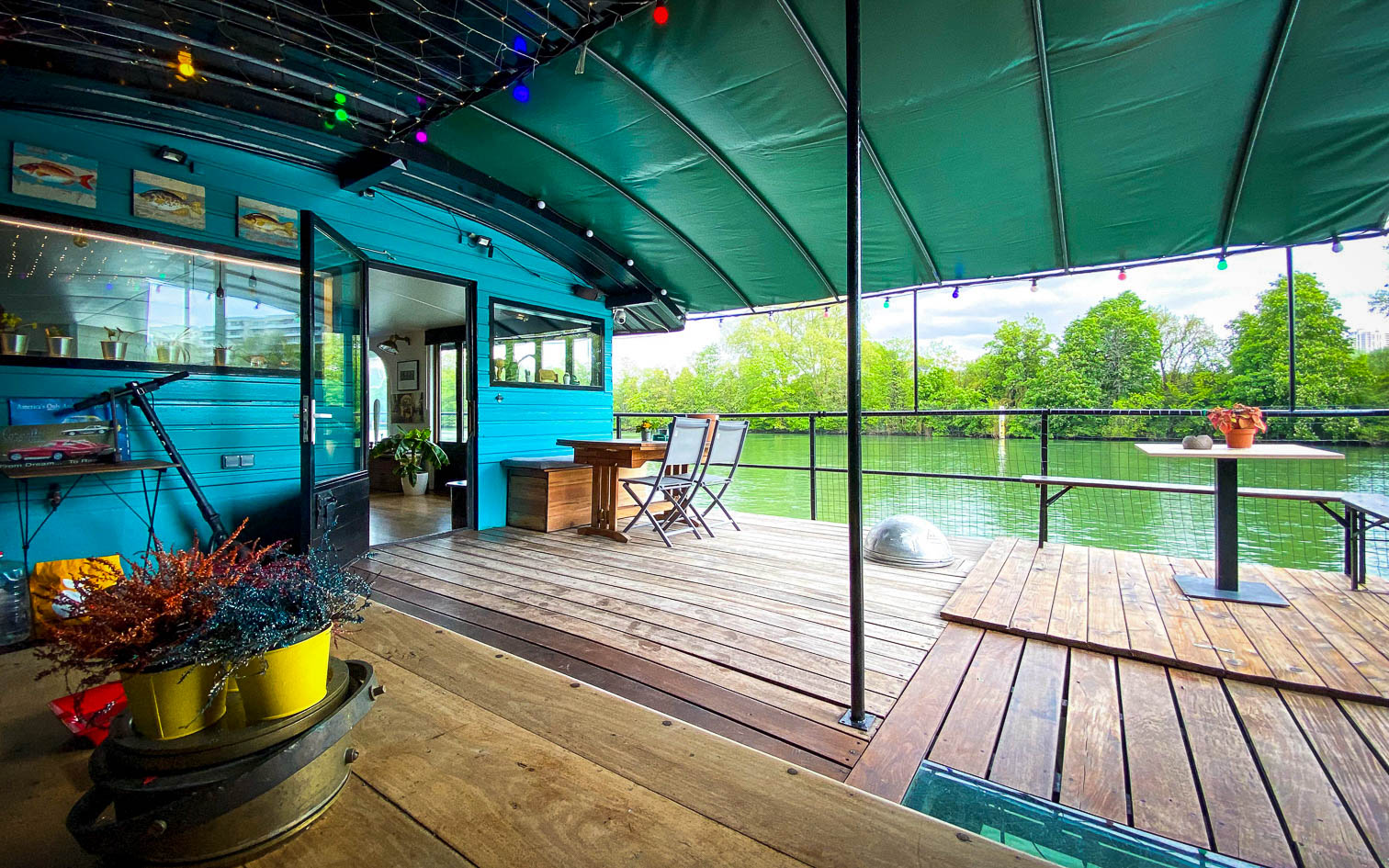 Cette maison flottante accueille toutes sortes d’événements, qu’il s’agisse d’anniversaires, de mariages ou de réunions professionnelles. Avec des atouts comme la sonorisation, un bar, une cuisine entièrement équipée, un vestiaire et le wifi, elle combine confort et fonctionnalité. De plus, pour ceux qui souhaitent explorer les environs, un hors-bord est à disposition en option, pouvant accueillir jusqu’à 10 personnes pour une croisière et parfait pour les comités restreints.