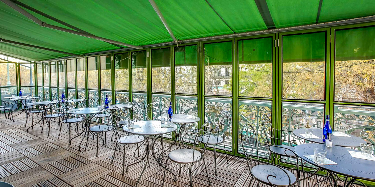 Laissez-vous charmer par les 100 m² de ce lieu parisien, magnifiquement décoré de dorures, de moulures et de boiseries d’époque, offrant ainsi un décor somptueux et raffiné. Avec une vue imprenable depuis la terrasse, vos invités pourront profiter d’un cadre spectaculaire.