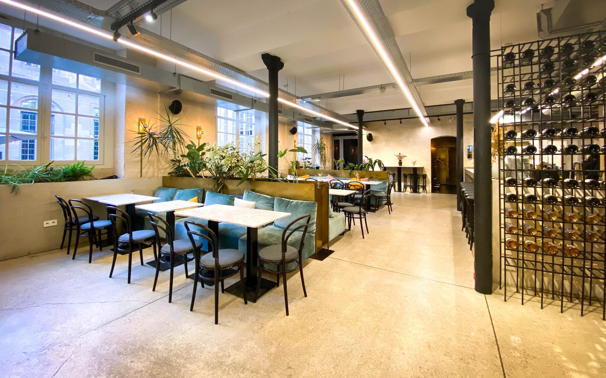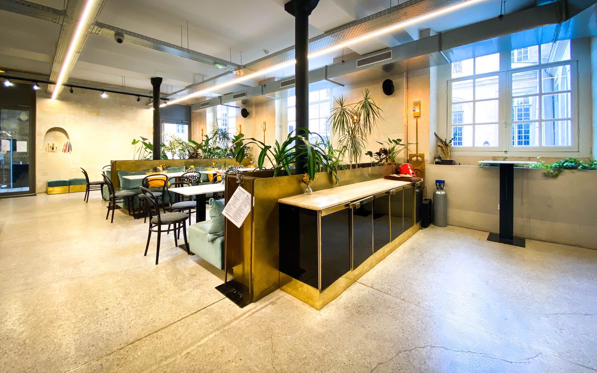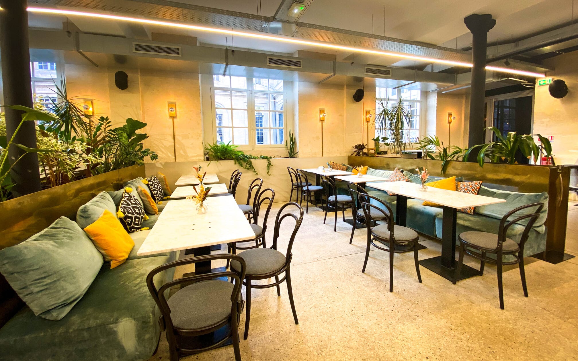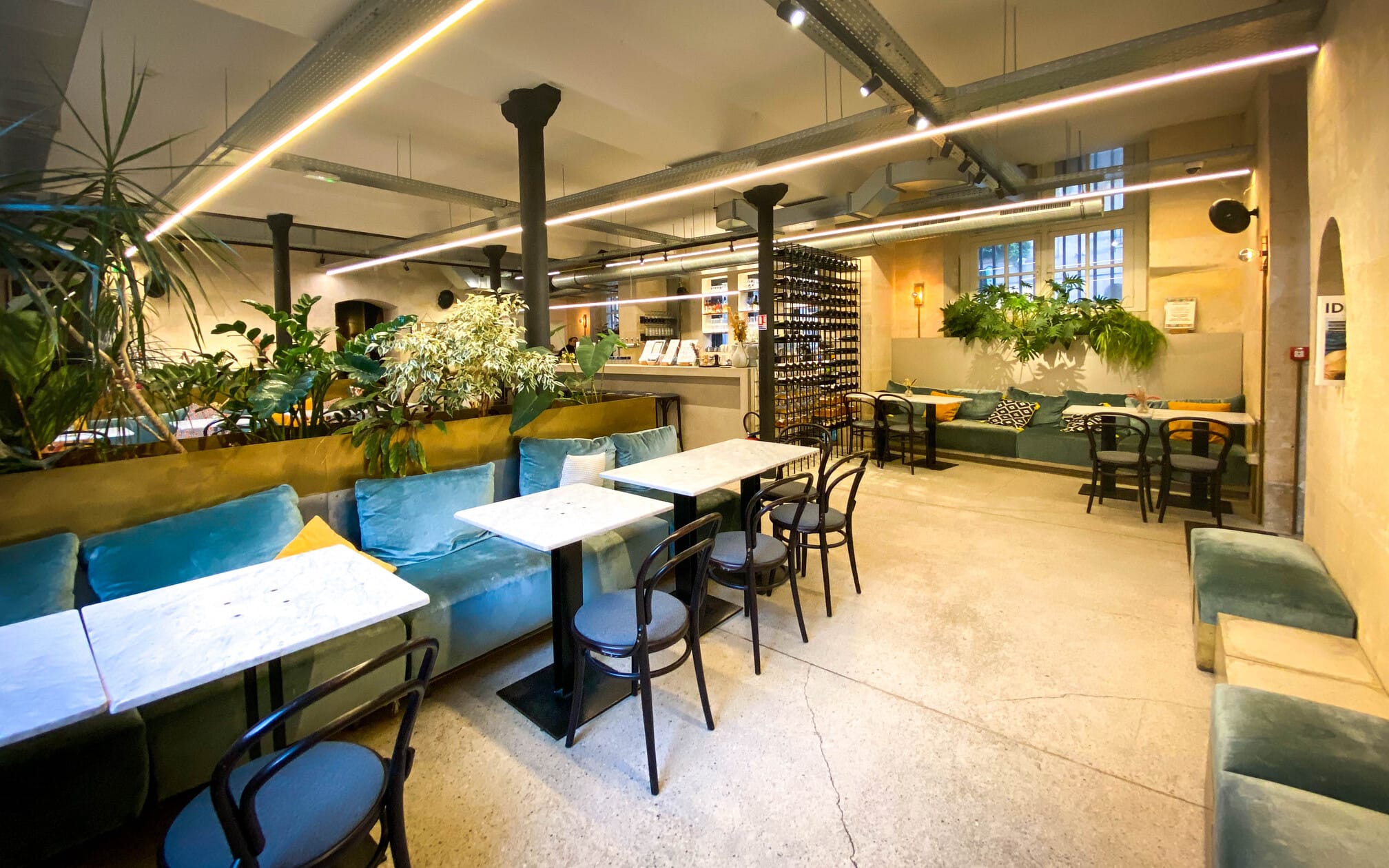 L’ambiance du Café de Pauline est à la fois feutrée et élégante, avec une décoration sobre aux tons boisés rehaussée de touches de verdure. La cour extérieure a été aménagée avec goût, offrant une belle terrasse où vous pourrez vous détendre. Le mobilier comprend de nombreuses chaises ainsi que des banquettes recouvertes de coussins confortables.