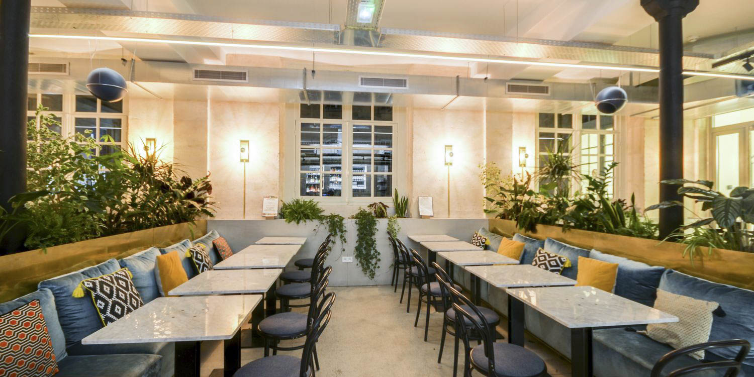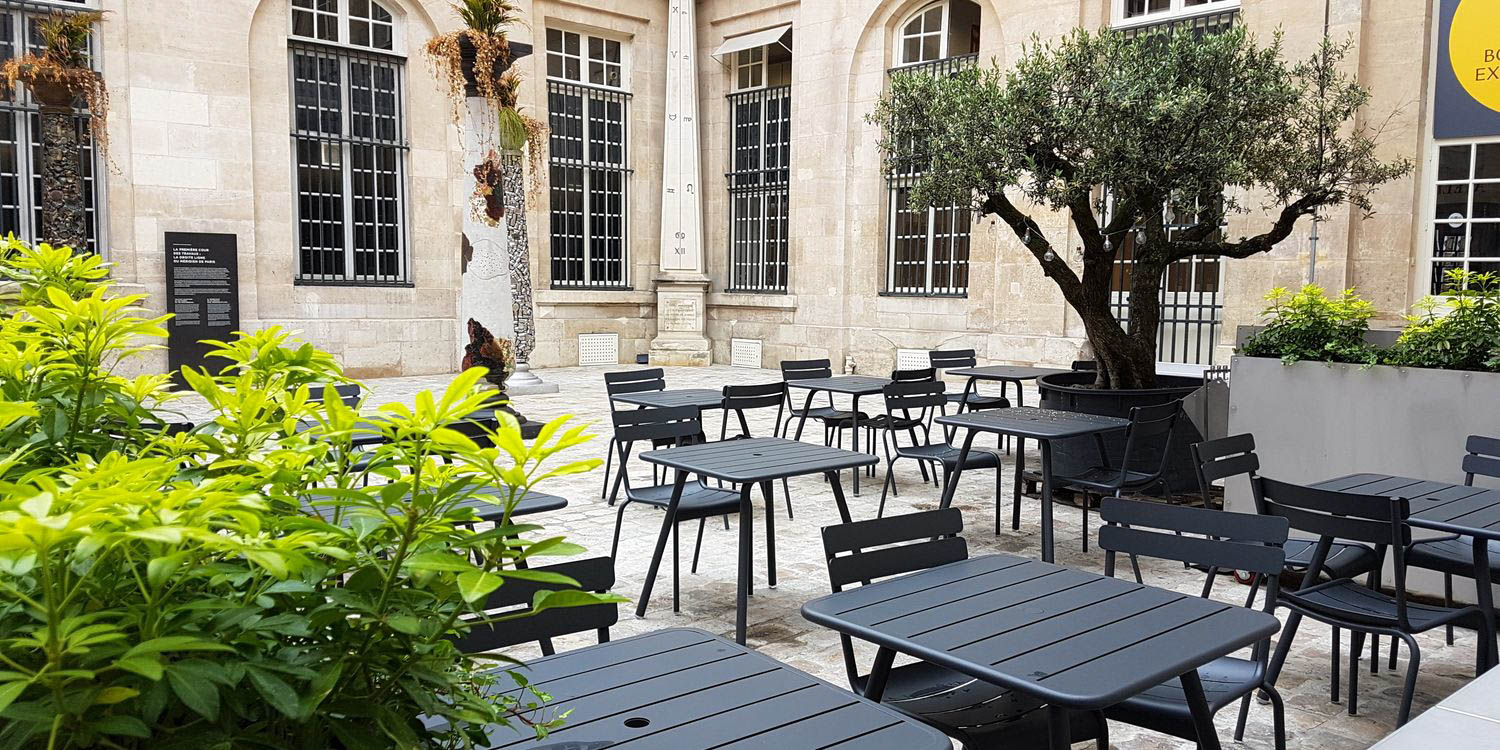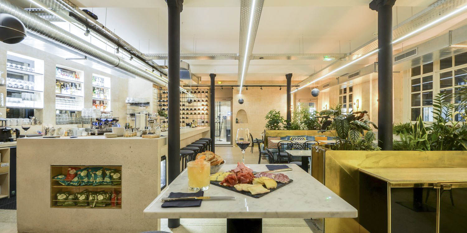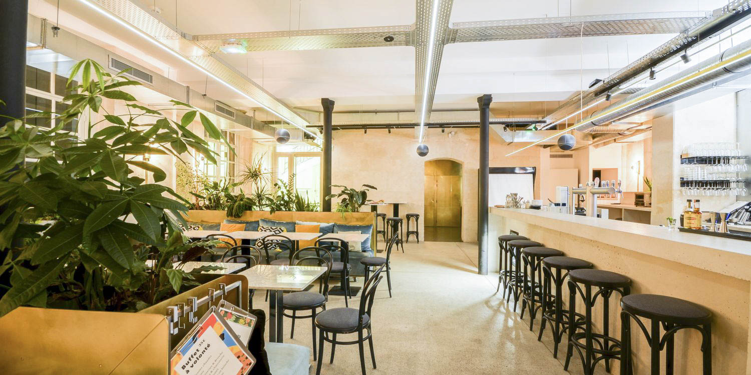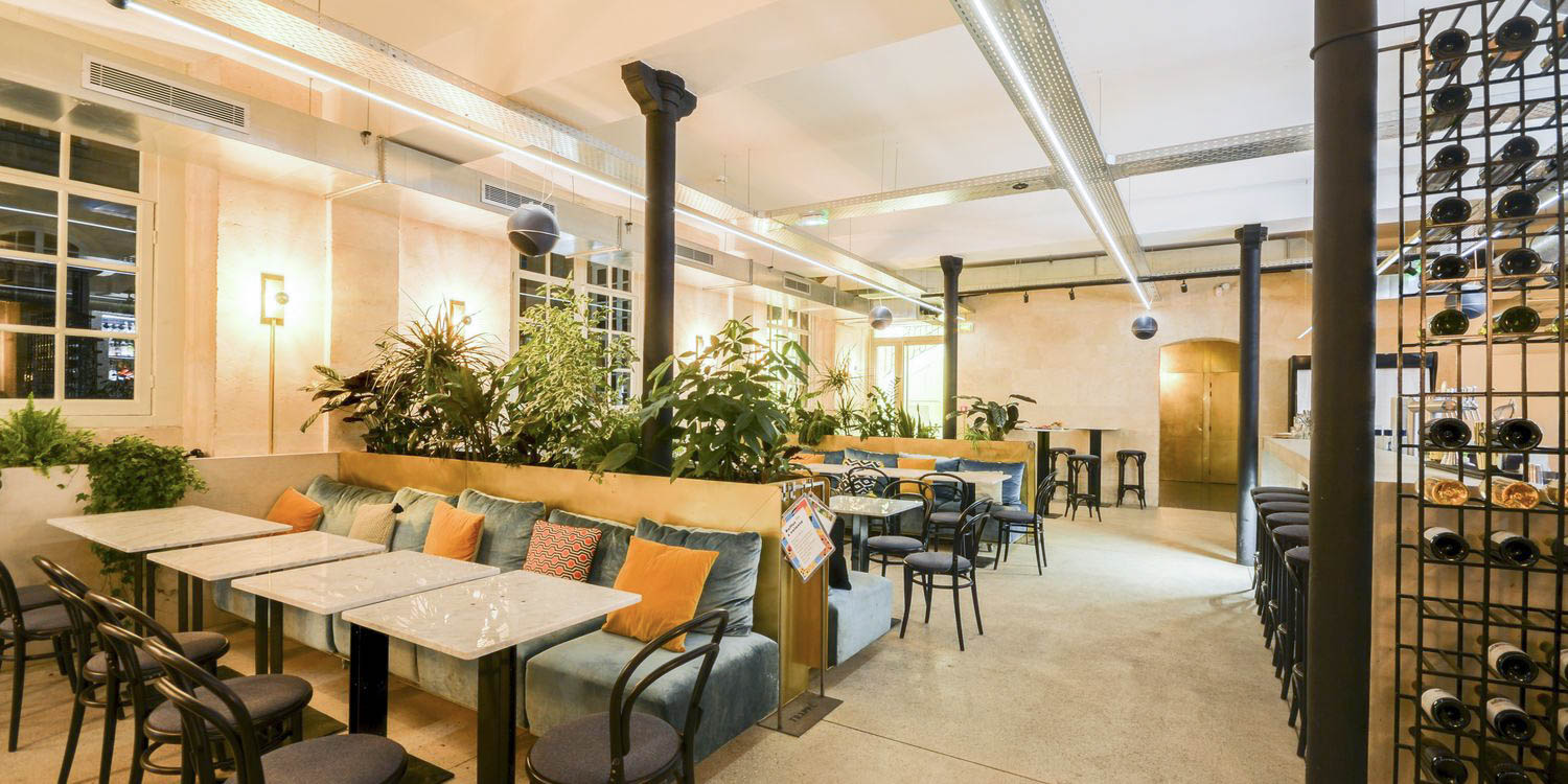 L’ambiance du Café de Pauline est à la fois feutrée et élégante, avec une décoration sobre aux tons boisés rehaussée de touches de verdure. La cour extérieure a été aménagée avec goût, offrant une belle terrasse où vous pourrez vous détendre. Le mobilier comprend de nombreuses chaises ainsi que des banquettes recouvertes de coussins confortables.